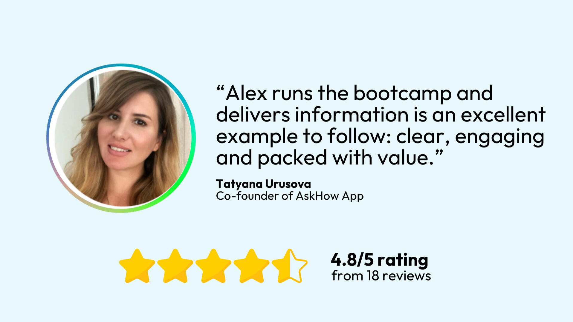 ✅ Attend 90-minutes live coaching & training sessions with founder Alex